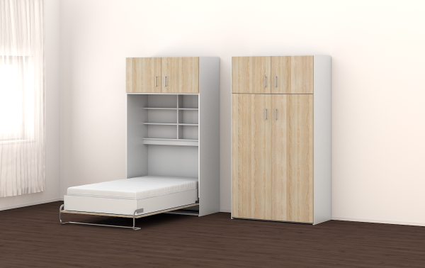 • Schrankbett Rio - 110x200cm - vertikal - mit Aufsatzschrank